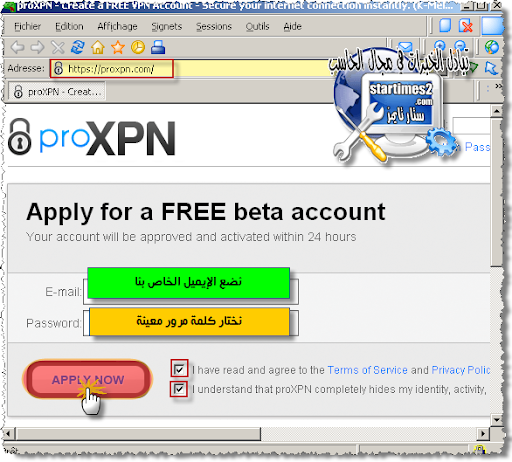لا تنسى الكليك على الايقونة لتصفح الموقع ؛ من بعد نقوم بالتسجيل بالموقع الداعم للبرنامج